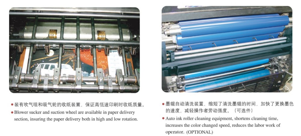 La macchina da stampa offset per stampa offset in quadricromia A2 per basse tirature è dotata di moduli ad alte prestazioni che la rendono affidabile, perfetta per le attività di stampa a basse tirature. Questi moduli includono rulli e ingranaggi ad alta precisione, un robusto meccanismo di alimentazione della carta, un preciso sistema di registrazione della carta e un sistema di alimentazione stabile dell'inchiostro. Soddisfa le esigenze del mercato in termini di stampa a colori a fogli singoli di alta qualità, efficiente ed economica, soprattutto per lavori a basse tirature. È in grado di gestire un'ampia gamma di spessori di carta: dalla carta sottile da 0,04 mm al cartone spesso 0,4 mm. E con il controllo touchscreen e l'interfaccia di programmazione intuitiva, puoi facilmente apportare modifiche intelligenti a tutte le impostazioni e ai parametri di stampa.