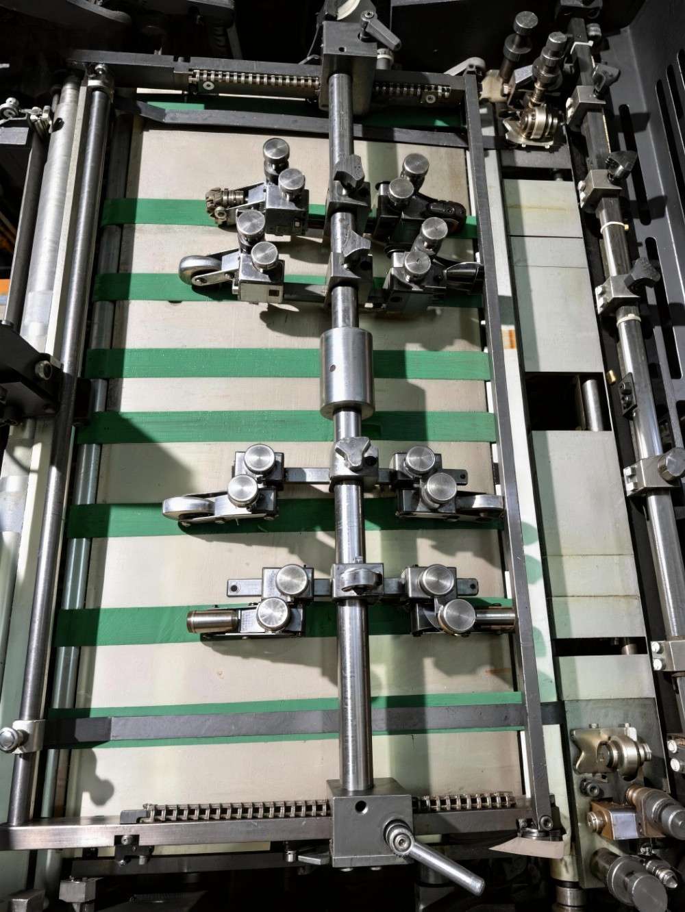 11) Le pinze a doppia molla impediscono lo scivolamento della carta durante il trasporto della carta ad alta velocità e mantengono una pressione di presa costante durante le lunghe tirature di stampa.