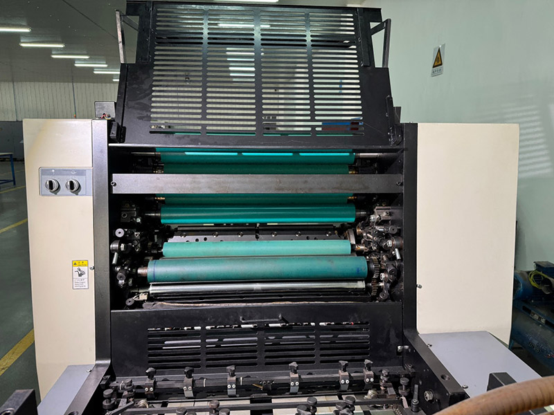 La macchina da stampa offset a foglio ad alta precisione monocolore A3 di grandi dimensioni si distingue per le sue caratteristiche di prim'ordine che la rendono affidabile ed efficiente. Ha una struttura meccanica per impieghi gravosi (base integrale, piastre laterali e rulli in ghisa), quindi è forte, rigido, resistente all'usura e assorbe gli urti. Ciò significa che funziona senza intoppi anche a velocità elevate, mantenendo sempre costante la pressione di stampa. I cilindri di stampa cromati resistono molto bene all'usura, aiutando la macchina a durare più a lungo e riducendo i costi di manutenzione quotidiana. I cuscinetti ad alta precisione e gli ingranaggi elicoidali messi a terra rendono la trasmissione di potenza stabile e fluida, senza nervosismi o anomalie. Anche la sicurezza è una priorità: i dispositivi di sicurezza sono integrati nel montaggio delle piastre, nella pulizia, nelle coperture protettive e nella regolazione delle porte per garantire la sicurezza degli operatori e della macchina. Il controllo pneumatico della frizione e dei rulli inchiostratori rende il funzionamento più affidabile, senza problemi imprevisti. Il meccanismo di montaggio della piastra è dotato di posizionamento e tensionamento rapidi, consentendo di risparmiare tempo durante l'installazione. Le parti di trasporto della carta (testa di alimentazione, piano carta, guida anteriore e pinze) gestiscono tutti i tipi di carta, da quella spessa a quella sottile. L'alimentatore carta a braccio oscillante garantisce un funzionamento fluido durante i cicli ad alta velocità, mentre i cilindri lastra e caucciù con anelli di supporto garantiscono stampe di alta qualità in velocità. Le pinze a doppia molla trattengono la carta saldamente, senza scivolare, anche durante lunghi lavori di stampa. Inoltre, il sistema semiautomatico di pulizia dei rulli inchiostratori è facile da usare: riduce i tempi di pulizia, accelera i cambi di colore dell'inchiostro, alleggerisce il carico di lavoro e aumenta l'efficienza della produzione. Dispone inoltre di controllo PLC e touchscreen con un'interfaccia semplice e facile da usare per gli operatori.