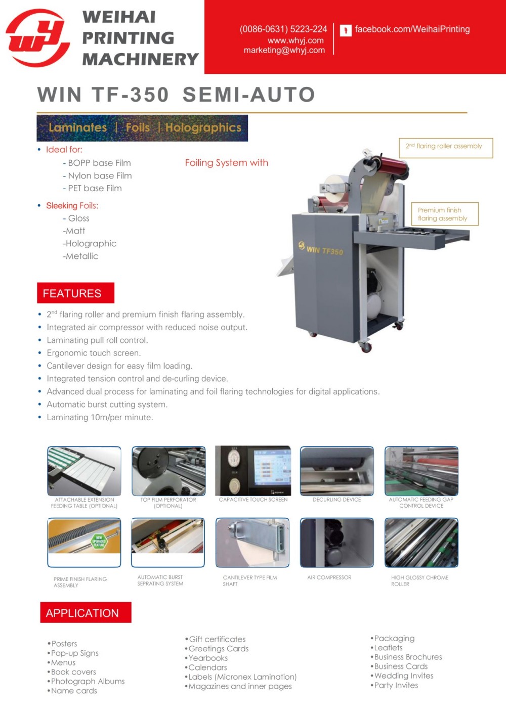 La macchina per laminazione e laminazione ad alimentazione manuale è un'apparecchiatura per laminazione e laminazione di metalli con alimentazione manuale della carta progettata e prodotta da Weihai Printing Machinery Co., Ltd. Con un design compatto, consente di risparmiare spazio in officina integrando sia le funzioni di laminazione che di laminatura di metallo, adatta per le aziende che richiedono un'elaborazione decorativa interna. Può convertire normali materiali stampati in prodotti finiti di alta qualità ed è completamente compatibile sia con le applicazioni digitali on-demand che con le tradizionali stampe offset litografiche. Per garantire risultati di elaborazione ottimali, la macchina è dotata di un dispositivo di controllo elettronico che regola la pressione del rullo e la temperatura di riscaldamento durante il funzionamento in base a variabili chiave quali velocità di funzionamento, spessore della carta e modelli di progettazione. Essendo un'apparecchiatura per stampa a caldo e laminazione ad alimentazione manuale ad alte prestazioni, è stato dimostrato che migliora significativamente il valore aggiunto dei prodotti dei clienti. I clienti possono scegliere tra un'ampia gamma di pellicole di laminazione e lamine metalliche per soddisfare le diverse esigenze decorative. Inoltre, è dotata di un piano di alimentazione carta allungato per accogliere banner e materiali stampati extra lunghi.